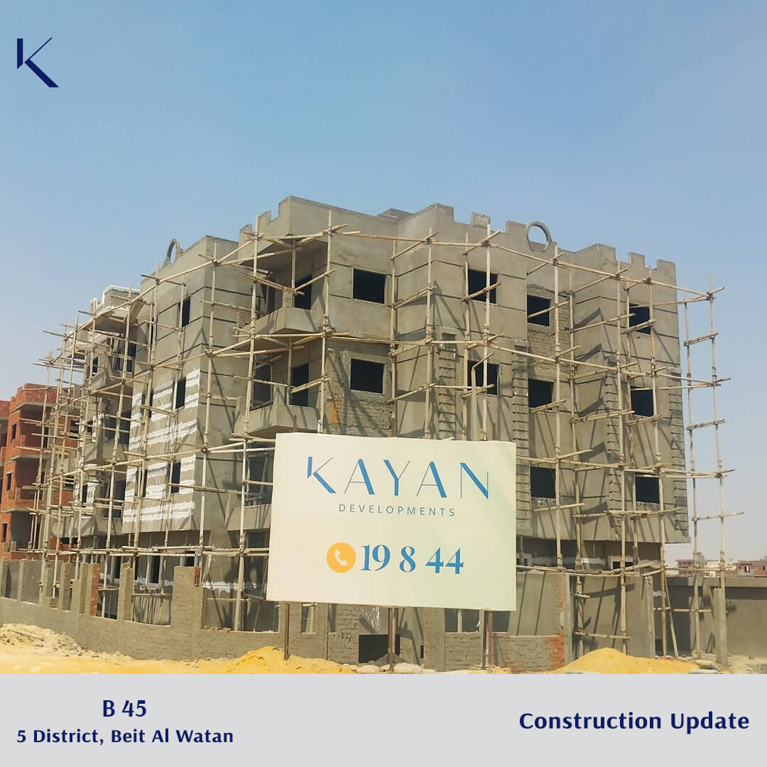 - تتكون مشروعات بيت الوطن الحى الخامس من دور أرضي و 3 أدوار متكررة بالإضافة لجراج ومخزن خاص بكل وحدة سكنية كما تم تخصيص 50% من مساحة المشروع للمساحات الخضراء والممرات.